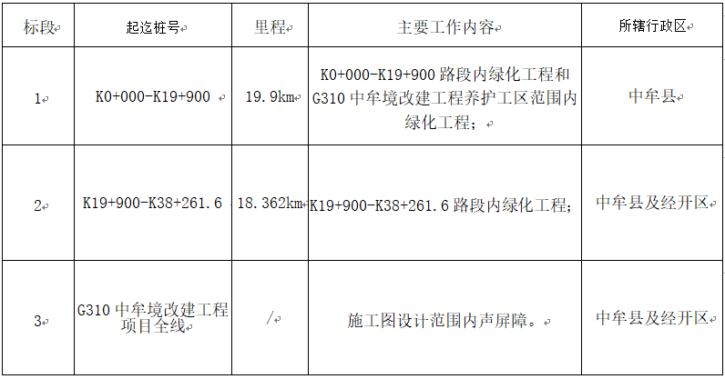 G310中牟境改建工程項(xiàng)目起點(diǎn)位于中牟縣小李莊現(xiàn)狀G310中牟、開封交界處(對應(yīng)原路樁號(hào):K552+333),接G310開封境改建項(xiàng)目終點(diǎn)。路線全長38.262公里。